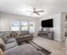 Discover this exceptional 4-bedroom, 2.5-bath spacious 2,240 sq ft home, the highly sought-after and rare, Garrison floor plan in Morgan Hills. This home offers comfort, style, and modern convenience. The heart of the home features a grand living space with a beautifully appointed kitchen island, complete with stainless steel appliances. Upstairs, find an incredibly large primary bedroom, a serene retreat. Enjoy year-round comfort with ceiling fans in all rooms and on the covered outdoor patio. For added privacy, sliding glass doors are equipped with UV protection privacy screens. The exterior shines with permanent holiday lights (30-year warranty, app-controlled). Enhanced security is provided by a security system with indoor/outdoor cameras and spotlights. Solar-powered walkway lights illuminate your path. The fenced backyard comes with a warranty; the home also is covered with 2-10 Warranty. This rare gem won't last long, schedule your showing and experience luxury and convenience.