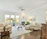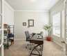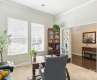 The winding foyer with art niche wall welcomes you home to this hard to find ranch/bonus room floorplan with the charm of Arts & Crafts architecture. Up front are an office, 2 bedrooms and a full bath. Entertain in the large light filled Greatroom open to the kitchen, a large island and dining area. French door lead to the covered back patio. There is a half bath for guest, conveniently located off the stairway wall leading to the to garage, laundry room and drop zone. The large laundry room features a long folding shelf and offers plenty of storage space for cleaning supplies. The private primary bedroom, not pictured, enjoys sunlight that floods the space, has a spacious ensuite bath with a tiled shower with 2 grab bars, plus a tub. The walk-in closet is quite large. The large bonus room or multi-purpose room with a full bath provides additional living/entertainment space. There is a walk-in attic. Please use SHOE COVERS PROVIDED. Thank You!