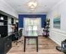 Stunning three-story home with a beautifully landscaped backyard. Enjoy the luxurious inground pool, serene waterfall, and storage shed. As you enter, you'll find a versatile office/den currently used as a bedroom, followed a flexible space that can serve as a dining room or additional office. The expansive kitchen boasts a large island, gas cooktop, stainless steel appliances, and opens seamlessly to the inviting living room, complete with a cozy fireplace. Upstairs, the primary suite offers a private retreat with en suite bath and a comfortable sitting area. You'll also find three generously sized bedrooms and two full bathrooms. The third floor features a large bonus/work room and an additional bedroom with its own full bath—perfect for guests or a home workspace. Host gatherings in the backyard paradise, complete with an inground pool, terrace with waterfall feature, and a storage shed.The spacious three-car garage offers room for vehicles and storage.