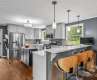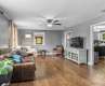 This charming all-brick ranch offers comfortable, low-maintenance living with 3 bedrooms, 2 full baths, and beautiful hardwood and tile flooring throughout. The kitchen features quartz countertops, stainless steel appliances (refrigerator conveys!), a tile backsplash, ample cabinet space, and a convenient breakfast bar. The dining area includes a cozy brick fireplace with gas logs, perfect for gathering year-round. Step outside to a spacious covered deck and sundeck overlooking a fully fenced, landscaped backyard—ideal for relaxing or entertaining. Additional highlights include a gas water heater and access to a nearby community beach area and dock for a low annual fee, offering an easy way to enjoy time by the lake without the upkeep and price tag of waterfront property.