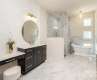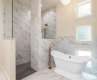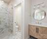 Stunning new construction in Thoms Estate! This custom-built home in the heart of North Asheville offers main-level living with a spacious open floor plan & high-end finishes throughout. The great room has soaring +20ft ceilings, abundant natural light, & mountain views. The main level primary bedroom featured vaulted ceilings, a natural gas fireplace, & an ensuite bath with walk in shower & soaking tub. The laundry room, pantry & mud room feature heated floors. Easy entry with age-in-place features including an elevator for access to the second level. Relax on the front porch & take in the mountain views or entertain guests on the large back patio complete with a natural gas stub-out for grilling. Extremely convenient location minutes away from Fresh Market, Ingles, Beaver Lake and the Country Club of Asheville. Vibrant downtown Asheville is less than 4 miles away. Thoms Estate amenities include a gated entrance, walking trails, community garden, pavilion area, & pickleball courts.