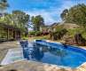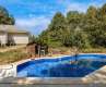 Charming Mini Farm on 7.978± Acres – A Country Living Dream! Discover peaceful country living in this spacious three-bedroom, three-bath, 1.5-story brick and vinyl home, perfectly situated on nearly eight acres. The main residence features a welcoming foyer, cozy living room with gas log fireplace, formal dining room, and a well-appointed kitchen with stainless steel appliances, tile backsplash, ample cabinetry, breakfast bar, and breakfast nook. Additional spaces include a laundry room, mudroom with cabinetry and second laundry hookups, office with closet, sunroom with vaulted ceiling overlooking the backyard, and two spacious bedrooms. The primary suite offers a luxurious retreat with dual vanities, a tile walk-in shower, jetted tub, and two walk-in closets. An attached in-law suite includes its own living room with fireplace, kitchen, dining area, bedroom, and full bath—perfect for extended family or guests. Step outside to enjoy two rear decks, a beautiful in-ground pool, fenced pastures, and tranquil streams crossing the property. Car enthusiasts and hobbyists will love the four garages: two doubles, one triple, and one single. The home is equipped with two gas water heaters (including a Rinnai tankless), a whole-house backup generator, and countless extras. This exceptional property offers space, privacy, and versatility—truly a must-see!