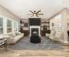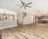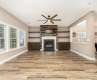 Nestled on cul-de-sac, this beautifully updated home offers style and comfort. The welcoming covered porch leads you into an open layout, where you'll find stunning luxury vinyl plank floors throughout the main living and in the loft upstairs. The family room is highlighted by a beautiful built-in and cozy fireplace, perfect for relaxing or entertaining. The updated kitchen is a chef’s dream, featuring sleek quartz countertops, stainless steel appliances to include double ovens, microwave and dishwasher. Off the kitchen, the laundry room and pantry offer practical shelving for easy organization. The primary suite boasts a tray ceiling, creating an elegant atmosphere, while the ensuite bathroom has been completely renovated with quartz countertops, LVP flooring, dual vanity, beautifully tiled walk-in shower, and walk-in closet. Every inch of this home has been thoughtfully updated. Plus, the covered porch and the fenced-in backyard with a storage shed adds both privacy and convenience.
