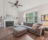Beautiful 1.5 story, 4-bedroom home in Provincetowne! A stylish chandelier welcomes you to the vaulted foyer flowing seamlessly into the spacious living room with gas log fireplace and wainscotting accent. The formal dining room featuring a bay window with seating is just off the living room with views of the back yard, perfect for entertaining. The kitchen boasts an electric range, microwave, dishwasher and disposal with breakfast nook for an eat-in option. The oversized primary suite features an ensuite bath with dual sink vanity, garden tub, glass enclosed shower, and walk-in closet. Three generous sized bedrooms are located upstairs with access to a full hall bath. Additional flex space provides extra storage or studio, adaptable to your needs! Sliding glass doors open from the breakfast nook to the deck overlooking the fenced back yard with lush shade trees. Only minutes to the dining, shopping, and entertainment of Stonecrest, the new Ballantyne Bowl, Blakeney, Waverly and more!