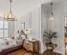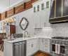 Enjoy downtown Morganton living at its finest in this 2 BR 2 BA second floor condo on West Union. Located in the historic Morganton Hardware building, this luxury condo blends modern updates with classic elegance. Updated in 2024, kitchen has top of the line custom cabinetry with Thor gas range, dishwasher, microwave and Fisher & Paykel refrigerator. Carrara marble counters, backsplash and custom range hood. Living & bedroom updates include custom wall moldings, new lighting, built-in bookshelves surrounding the gas log fireplace and fresh paint throughout. Ralph Lauren light fixtures and 8 foot solid wood doors with custom hardware. Private master suite & second bedroom with attached hall bath access. Separate laundry room. Roof top terrace with views of the Blue Ridge and downtown Morganton. Two deeded parking spaces & storage unit in the private lower level garage with elevator or stair access to 2nd floor. Walk to your favorite shops, restaurants & entertainment.