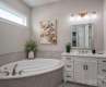 Welcome to this beautifully designed open-concept home that perfectly balances indoor comfort with outdoor elegance. Ideal for both relaxation and entertaining, this residence boasts 1,800 square feet of travertine tile in the backyard, framing a stunning pool and spa. Surrounded by lush, professional landscaping, the outdoor space offers both privacy and style. Inside, enjoy a host of premium upgrades, including designer lighting, custom closets in all bedrooms, and surround sound throughout—indoors and out. Every detail has been thoughtfully curated for modern, upscale living. The spacious garage features epoxy-coated floors, built-in cabinetry, and shelving for excellent storage and organization. Located in the prestigious McLean South Shore community, residents have access to top-tier amenities: a paddle sport launch, scenic walking trails around peaceful ponds and the lake, a clubhouse, outdoor pool, and fitness center.