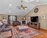 Beautiful custom brick ranch on a large corner lot with a private, fenced-in pool featuring a water slide, brand new gazebo, and screened porch wired for surround sound. Enjoy rocking-chair mornings on the charming front porch. Inside, the open floor plan boasts a vaulted-ceiling living room with gas log fireplace and recessed lighting. The kitchen offers abundant cabinets with pull-out drawers, a large breakfast bar, and views of both the dining area & living room. The oversized primary suite includes a Jacuzzi tub, plus ensuite bath with walk-in closet, shower, and dual-sink vanity. Split-bedroom layout offers 2 additional bedrooms & a hall bath. Laundry room with sink and central vac system leads to an attached 2-car garage; detached 2-car garage includes a workbench and a half bath for pool guests. Encapsulated crawlspace, HEPA-filtered HVAC (2022), new pool pump (2023), & new water heater (2025). Community lake access with dock, kayak racks, boat storage, picnic area, and gazebo.