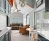 WITH additional RV LOT!! This charming 400+ sq ft park model boasts vaulted ceilings and an open floor plan, creating a cozy, move-in-ready retreat. Featuring one bedroom, bathroom, and an open sleeping loft, offering ample space for relaxation. The spacious kitchen includes abundant cabinetry for storage & entertaining. Enjoy a large covered side deck and over 250 sq ft of partially covered rear deck, perfect for soaking in the serene Creekside views. The private, relaxing setting includes an additional level lot with full electrical, water, and sewer hookups, plus a concrete pad and a 10x12 outbuilding with vinyl flooring, electricity and concrete driveway with extra rebar for heavy RV's. Both lots offer year-round paved access and stunning mountain views. Located just minutes from Maggie Valley, downtown Waynesville, and the Blue Ridge Parkway, this property is an ideal getaway or permanent home.