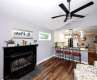 Beautifully renovated home, in a cul-de-sac, overlooking the golf course at fairway #2 of the Cove. High ceilings give this home an open feel with a dramatic effect. Primary suite on main, with rustic beams, eye catching shower and separate vanity area. Also on the main level, is a second bedroom and full bath. Beautiful kitchen with large island, quartz counters and tile backsplash. Kitchen is open to cozy den/hearth room. This home has a lot of flexible spaces to suit your particular needs. Great spaces continue outside with a fenced backyard, large shady deck, a beautiful view of fairway #2, firepit and hot tub to finish it off! Upstairs you have two bedrooms and a full bath. This move in ready home was pre inspected and all items corrected, including a new roof installed last week. Garage is tall and has walk up stairs to a storage area above. Exterior is maintenance free vinyl siding, no painting! windows and patio door have been replaced Fireplaces are "as is"