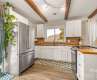 Quaint 1950 cottage with character and potential, ideally suited for a buyer looking for charm, convenience, and room to add value. This 2-bedroom, 1-bath home offers thoughtfully updated interior space, featuring an open living, dining, and kitchen layout with exposed wood beams, butcher block countertops, newer flooring, paint, and kitchen appliances installed by previous owner just over three years ago. The largest bedroom is surprisingly spacious, creating a comfortable retreat. A wraparound porch spans three sides of the home, with the rear portion framed in and ready to be screened—perfect for enjoying outdoor living. The level, cleared .41-acre lot provides ample outdoor space, and a large detached building offers excellent storage. A separate, enclosed laundry room with concrete floors and electricity is located just off the back of the home allowing for more storage. Conveniently located close to town amenities and interstate access, this property offers easy connectivity while maintaining a cozy cottage feel. This home presents a great opportunity for buyers seeking an affordable entry point in a central location.