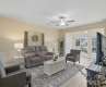 Welcome to the elegant charm of Sun City with this cozy Fox Run home. Entering the home you are greeted with a beautifully tiled foyer wainscoting accents to lift the eye. The wainscoting continues into the open dining room that extends to a sunlit living room, brightened with light LVP floors and warm tones throughout the living area. The kitchen is just off of the dining room, carrying an abundance of cabinetry, SS appliances and an adjacent breakfast nook to enjoy a morning coffee and kick start your day. Just beyond the living room, an open, tiled sunroom accesses the rear patio w/ a retractable awning to savor sunsets, a good read, or an evening card game with friends. The primary bedroom has ample space for a serene retreat, coupled with a large walk-in closet, and an en suite showcasing dual sink vanity and glass enclosed shower. The home is completed with an additional bed and bath for overnight guests. The Fox Run model is a home where you can truly relax and enjoy the vibrant 55+ lifestyle and the exceptional lifestyle offered at Sun City Carolina Lakes. Enjoy access to world-class amenities, including a championship golf course, a state-of-the-art fitness center, indoor and outdoor pools, tennis and pickleball courts, and a wide array of clubs and social activities.