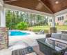 Experience refined elegance and effortless living in this stunning full-brick home accented with timeless stonework, beautifully situated on a 1.2-acre resort-inspired lot with salt water pool! From the welcoming covered porch to the manicured landscaping, every space reflects thoughtful design and sophistication. Inside, rich hardwood floors lead to a showstopping chef’s kitchen featuring crisp white cabinetry, quartz countertops, a Wolf range, Sub-Zero refrigerator and freezer, and an oversized island perfect for entertaining! The main level offers a guest suite or home office with a full bath and nearby laundry, plus a custom drop zone off the garage for everyday convenience. Upstairs, the spacious primary retreat boasts a spa-like bath with soaking tub, oversized tile shower, and dual vanities. A versatile loft with built-ins, three additional bedrooms, two full baths, and a second laundry complete the upper level. Outdoors, a heated saltwater pool anchors the lush, landscaped backyard surrounded by mature trees and vibrant seasonal plantings—creating a private oasis for year-round enjoyment. The covered pool house with outdoor shower and shaded lounge area offers the perfect spot for al fresco dining or quiet relaxation, while the firepit patio invites evenings under the stars. Located in a sought-after community of Bells Crossing with a neighborhood pool, clubhouse, and tennis courts, this home perfectly blends elegance, comfort, and lifestyle—just minutes from Stumpy Creek Lake Access and Lake Norman State Park!