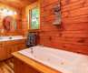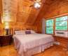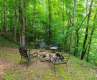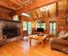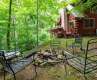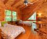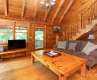 Charming log cabin in a beautiful wooded setting. As you enter, you are drawn in by the soaring cathedral ceiling and the beautiful wood interior! The open floor plan features a living room which is open to kitchen and dining areas which makes an easy flow and is great for entertaining! Beautiful stone fireplace. The home enjoys 2 bedrooms, one on each level and each with adjoining baths that are also accessible from the hall. Enjoy relaxing in the jetted tub in the primary bath. The spacious loft area offers so many possibilities for a second family area, home office, play room or extra hang out space to relax! The covered front porch is the perfect for your rocking chairs! Monitor and electric baseboard heat. There is an open deck for grilling or soaking up the sun. Possibility to purchase some/most of the furniture on a separate bill of sale.