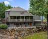 Embrace the ultimate lakefront lifestyle in this extraordinary luxury home nestled across from a scenic golf course with long-range mountain views and a tranquil lakeside cove and flagstone firepit in the back. With over 5,000 sf of living space spread across three levels, every inch of this home exudes top-tier craftsmanship and thoughtful design. The grand entrance leads into a bright, open layout, featuring a gourmet chef’s kitchen and primary suite on the main level. The upper-level hosts additional primary suites, ensuring everyone enjoys five-star comfort. The fully finished basement includes a second living area, ideal for multi-generational living or hosting extended guests. Expansive outdoor spaces invite you to unwind with a large covered back deck and lower-level patio. Paved golf cart access leads directly to the private covered dock. Whether boating, fishing, or enjoying the serene beauty of the lake, this home is your gateway to a life of waterfront relaxation!
