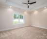 Discover Your Dream Home! Introducing a stunning new construction featuring a split bedroom plan designed for modern living. Enjoy the spaciousness of an open floor plan with vaulted ceilings that create an airy, inviting atmosphere. The primary bathroom is a true oasis, boasting double sinks and a sleek shower. In the kitchen, you'll find elegant soft-close drawers and a generous, large island topped with luxurious leather finish countertops. The charming farmhouse sink adds a touch of style and functionality. Retreat to the primary bedroom, which showcases a sophisticated tray ceiling and is complemented by luxury vinyl flooring throughout the home, ensuring both beauty and durability. With a convenient 2-car garage and so much more, this home is perfect for those who appreciate quality and craftsmanship. Schedule your tour today and experience the perfect blend of comfort and elegance!