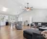 Welcome to your beautifully updated and meticulously maintained home! Step inside to find a fresh, neutral color palette that creates a bright and inviting atmosphere throughout. The open-concept living space seamlessly connects the kitchen and living room, highlighted by vaulted ceilings that add a sense of space and elegance. The kitchen has been thoughtfully upgraded with brand-new quartz countertops, a modern sink, and freshly painted cabinets adorned with stylish new hardware perfect for both everyday living and entertaining guests. The split floor plan offers privacy and comfort, ideal for families or guests, while crown molding adds a refined finishing touch to the home’s aesthetic. This home offers a serene lifestyle with quiet surroundings, making it the perfect retreat after a busy day.