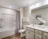 Tudor iron grey with aspen ledgestone accents for a modern contrast. A welcoming covered front porch, complementing an 8-ft front door for a grand entrance, 2-car attached garage. A wide and open entrance leading to a 1st floor guest suite with a full bath, perfect for hosting visitors or office. Primary suite on 1st floor with an en-suite with tile shower and seat walk in shower, seperate water closet and large walk in closet. Family room is large and cozy with a fireplace as a centerpiece, ideal for gatherings. Kitchen is an open-concept with the "Natural Elegance" package including: iced white quartz countertops, white subway tile backsplash and light gray cabinets for a soft and airy feel. Gas range and stainless steel appliances. Dining area has 8ft sliding glass doors leading to an outdoor space. Tons of windows for natural lighting. Upgraded plank floors. A large entertainment room on 2nd floor for movie nights, a game room, 2 additional bedrooms with hall bath.