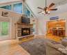 Enjoy privacy and breathtaking mountain views all year round in this custom-built, one-story home from 2005. Blend of modern amenities and rustic mountain charm, this home features 9ft ceilings, oak hardwood floors, exposed beam, vaulted ceiling, open floor plan with a cozy stone fireplace. The kitchen offers an island and breakfast bar with Corian countertops. Primary suite includes a double vanity and a tiled walk-in shower. A split layout places two bedrooms and a full bath on the opposite side. Views showcase Cataloochee Ski Slopes. Paved access leads you right to the home. A well-maintained community with a low $400/yr HOA fee and Fiber Optic Internet. It also boasts a 2-car garage, a 2-car carport, and ample driveway space for parking and easy turnarounds. Additional storage is available in the shed, and the lush landscaping includes black raspberries, strawberries, and blueberries. A year-round creek runs through the property, and lots of wildlife! No Rentals Allowed.