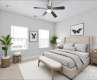 Well-maintained 5-bedroom, 3-bath home with a spacious open floor plan and 9-foot ceilings on both levels. The main floor features durable LVP flooring and a modern kitchen with 42-inch white cabinets, granite countertops, a large island, and stainless steel appliances. Refrigerator, washer, and dryer are included. A main-level bedroom with a nearby full bath is ideal for guests, a home office, or multigenerational living. Upstairs offers four additional bedrooms, including a generous primary suite with ample closet space. The covered patio is perfect for relaxing or entertaining. A 2-car garage provides plenty of storage and parking. Located in a desirable community with a neighborhood pool and green spaces. Close to shopping, dining, and major highways. Don’t miss this move-in ready home—schedule your showing today!