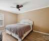 Located on a spacious corner lot, this home features a new HVAC system (2022) and roof (2020). The entry flex room offers versatile use as an office or formal living room. The open floor plan connects to a kitchen equipped with a double oven, gas cooktop, granite countertops, and a pantry. The main floor has been freshly painted and features a two-story great room with a large ceiling fan, built-in bookshelves, and a gas fireplace. The expansive primary bedroom includes a vaulted ceiling, room for a sitting area, and a glass-enclosed shower tiled from floor to ceiling. Outside, enjoy the large brick patio, an additional patio ideal for a firepit, and a wired shed for storage or a workshop. Refrigerator, washer, and dryer are included. The community offers resort-style amenities like tennis courts, a pool, and a clubhouse.
