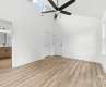 Welcome home to this stunning modern home with a privacy fence and backed by a 10-year Quality Builder Warranty! This home has a spacious open floor plan on the mail level with enhanced 9 foot ceilings that create an even more open feel. You will not want to miss the primary suite with 15 ft vaulted ceilings and a private bathroom, complete with dual sinks, beautiful tiled shower and upscale finishes. In the kitchen you will find quartz countertops, soft close cabinetry, and a beautiful herringbone tile back splash. These homes were designed with modern style but with everyday functionality in mind. With the spacious main level open floor plan and the patio this home is perfect for daily living and entertaining. Please note that the tax value is for the lot only.