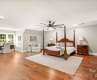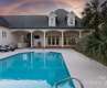 Beautiful estate home situated on sprawling 2 acre waterfront lot in popular gated Walden at Providence community. Floor plan features a primary on main + guest room with attached full bath and an attached pool house. The home's interior is bathed in natural light and offers stunning water views. Primary bedroom features hardwood floors, his & her walk in closets + an updated primary bath featuring tiled shower with frameless shower door & vessel tub + new vanities. Lovely kitchen includes quartz countertops, all new KitchenAid appliances + a walk in pantry. Upstairs features 3 generously sized secondary rooms, fitness room with 1/2 bath + an oversized guest suite with attached full bath featuring tiled walk in shower with frameless shower door. 3rd floor features a private bonus/flex room. The focal point of this estate home is the amazing backyard and water views! One of the few homesites in the area that offer this type of view! Interior freshly painted and hardwoods refinished!