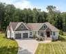 Welcome to this stunning custom-built ranch with a spacious bonus room upstairs that can easily serve as a 4th bedroom. Thoughtfully designed with high-end finishes and a flowing open-concept layout, this home offers the perfect balance of everyday functionality and luxurious living. From the moment you arrive, you'll be captivated by the curb appeal with beamed columns, stone accents and a charming front porch welcome you through elegant double doors into a beautifully crafted interior. Just off the foyer, a formal dining room features a bold accent wall, setting the tone for the style and quality found throughout. The heart of the home is the vaulted family room, where wood accents, a center beam, and a brick fireplace with custom built-ins create a cozy and inviting space. A full wall of glass with sliding doors leads to the incredible Eze-Breeze all-seasons porch seamlessly blending indoor and outdoor living. The chef’s kitchen is a true showstopper, complete with a massive center island with farmhouse sink, gas range under a custom alcove, and stylish shelving flanking the cooking space. Don’t miss the hidden walk-in pantry discreetly located beside the refrigerator! A split-bedroom layout provides privacy for all. Two generous secondary bedrooms share a unique wet area design, each with its own sink and walk-in closet. The private primary suite is a true retreat—double wood doors open to a spa-inspired bath with soaking tub, oversized tiled shower, dual vanities, and luxurious finishes. Additional highlights include a large laundry room with sink and folding counter, a pocket office ideal for remote work, and a versatile upstairs bonus room perfect as a 4th bedroom, guest suite, or media room. Set on nearly 1.4 acres of manicured lawn backing to woods, the outdoor living is just as impressive—relax or entertain on the custom patio and enjoy the peace and privacy of your own backyard sanctuary. This home truly has it all—style, space, and serenity. Come experience it for yourself! Nearly 200k in upgrades since the home was purchased including: hardscape, sod, irrigation, yard drainage, LeafGuard, Eze Breeze porch, garage epoxy plus built-in storage; hardwired speakers, tvs & thermostats; whole house water filtration; bonus room built-in bench; and the list goes on!!