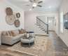 Luxury Townhome located on one of the preferred PRIME lot locations w/wooded views and privacy! Owner's Suite on the MAIN level & offers a Luxury Bath w/oversized shower & large walk-in closet. This end-unit "Stafford" plan w/10’ ceilings on the main & 9’ on the upper offers lots of windows & natural light, 8’ Doors (main). The kitchen offers Electrolux gas Cooktop, Wall Oven & Micro-Oven combo, Electrolux DW & Designer Quartz Island w/seating for 4, plus dining area & sliding doors to private patio area. 3 additional BR's & a large loft area on the 2nd level. The loft features a bar w/quartz counters & a beverage fridge. One of the large upper BRs could easily be a 2nd primary BR having an en-suite full BTH and walk-in closet. A remote water shutoff for travel, tankless WH, oak tread stairs with metal balusters & more, 2 car garage! The owner will consider selling fully or partially furnished (with a separate bill of sale for any furniture that the buyer might like to purchase).