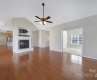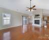 Step into low-maintenance living in this inviting one-story home, nestled in the 55+ community, Polo Club at Mountain Island Lake. Featuring an open layout filled with natural light, neutral paint, hardwood floors and whole-home blinds. Updated kitchen boasts new LVP flooring, ample cabinets, granite counters, stainless appliances - including gas range with double oven - plus large island with seating. Vaulted ceiling and double-sided gas fireplace create a cozy connection between the living and dining areas. Split-bedroom plan includes a spacious primary suite with walk-in closet and ensuite featuring a dual-sink vanity, zero-entry shower and grab bars. A secondary bedroom, full bathroom and flex room offer space for guests or office. Private courtyard, laundry room with sink and finished two-car garage. HOA covers exterior maintenance. Amenities include pool, clubhouse, fitness center and planned activities. Conveniently located near Riverbend Village, I-485, I-85, Uptown and CLT.