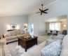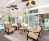 Beautifully appointed and incredibly spacious home straight out of a magazine! Welcoming covered front porch to the foyer that looks into a spacious living room with vaulted ceiling and centerpiece wood burning fireplace. An adjacent dining room makes this area perfect for entertaining. An oversized family room with an abundance of windows overlooks a mature tree scape. The kitchen with upgraded maple cabinets, neutral counters and stainless appliances includes a breakfast bar, separate coffee bar/buffet area, and breakfast area. Large screened porch with views of the landscaped backyard featuring privacy fence, planting beds, and a deck with built-in hot tub. A hall off the foyer leads to the expansive primary bedroom with dual closets and an ensuite featuring separate vanities, garden tub and a walk in shower. Two additional bedrooms share an updated hall bath with designer vanity, tiled floors, and a tiled tub/shower combo. Quiet cul-de-sac location zoned for terrific schools.