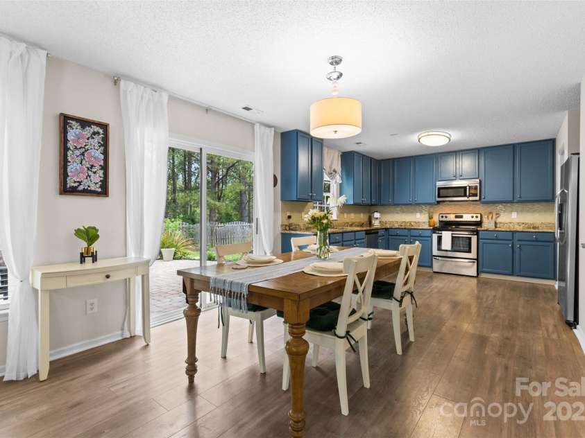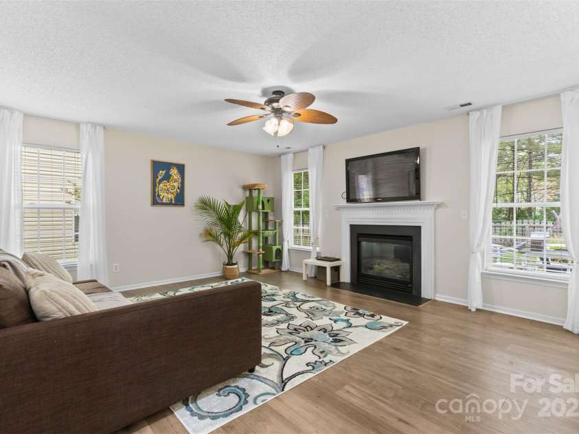 Welcome to this well-maintained 4-bedroom, 2.5-bath home in the vibrant community of Tega Cay. The first floor offers an open layout ideal for hosting, featuring a kitchen with granite countertops and freshly painted cabinets complemented by durable vinyl plank flooring. It also includes a flexible space perfect for an office, library, or playroom. On the second floor, you'll find a large primary bedroom, two additional bedrooms, and a spacious fourth bedroom/bonus room, all arranged for optimal comfort. The outdoor space features a fenced backyard with a fire pit and patio, ideal for relaxation and gatherings, and backs up to a private wooded area, ensuring privacy. The home benefits from solar panels that significantly lower electricity costs. No HOA fees. Some community amenities like the golf course, tennis courts, and swimming pool require additional charges. Residents also enjoy walking trails and lake access. Experience the active and amenity-rich lifestyle of Tega Cay!
