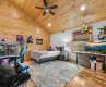 Enjoy big long-range views year-round from this stunning 2023 Modern Mountain home, ideally located between Boone and West Jefferson in a gated community. With modern design and mountain charm, this home features an open floor plan, two spacious living areas, a loft, three bedrooms, office, and bonus room. Oversized covered decks on both levels invite you to relax, dine, or stargaze in the cool mountain air. The kitchen includes stainless appliances, quartz counters, painted cabinets, and a large island. The dining area opens to a grand living room with cathedral tongue-and-groove ceilings and a floor-to-ceiling stone fireplace. The main level also features the primary suite with deck access, soaking tub, shower, and walk-in closet, plus a half bath. Upstairs: loft, two vaulted-ceiling bedrooms, full bath. Lower level has a large living area, two bonus rooms, laundry, and separate entry. Sold unfurnished. Great as a primary, second home, or rental—short and long-term allowed.