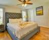 Enjoy peaceful mornings on the inviting covered front porch, perfect for sipping coffee or tea. This beautifully maintained 4-bedroom, 2-bathroom home offers a thoughtful layout with the primary suite conveniently located on the main floor, complete with a cozy lounging and reading nook. Step inside to soaring vaulted ceilings and a bright, open living space. The gorgeous kitchen features granite countertops, a stylish tile backsplash, and stainless steel appliances — all included, as is. Upstairs, you'll find three spacious bedrooms, each with ceiling fans for year-round comfort. Both full bathrooms are fully tiled and designed with modern flair. This home also includes a 1-car garage that is fully functional for parking, storage, or can easily be transformed into a man cave, game room, home gym, or creative workspace — the choice is yours. Out back, a patio perfect for entertaining or relaxing, offering a seamless indoor-outdoor lifestyle. Tucked away in a serene cul-de-sac, this home blends comfort, style, and flexibility — ready for you to move in and enjoy.