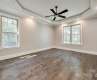 Don't miss this stunning home with high-end finishes throughout. Craftsmanship abounds in the graceful arches,stately columns,picture frame molding & chair rail,wide baseboards,crown molding & window casings. The covered front porch & Mahogany arch-top double entry doors offer a warm welcome .Step into the stately Foyer flowing into the Dining Room w/dark wood coffered ceiling.Great Room showcasing gas fireplace w/custom mantel-coffered ceiling-wood fan.Kitchen w/Breakfast Area-granite counters-backsplash-glass insert accent cabinets-soft close cabinets-pantry-stainless microwave-gas range.Main-level Primary BR w/elegant ceiling design-walk in closet w/built-ins & ensuite Bath w/large custom tiled marble shower-dual shower heads-marble floors-granite top dual vanity-private toilet area.Upstairs 2nd Primary BR includes ensuite Bath w/custom marble tile shower & marble floors. Bonus Room-Playroom-3rd BR-Hall Bath has tub w/custom tile walls.Amazing rear covered deck w/rich wood ceilings.
