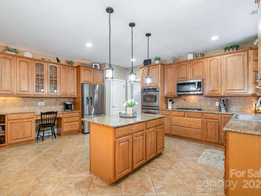 CUSTOM-BUILT HOME THAT IS GREAT FOR ENTERTAINING! An Open Concept main level features a 2-Story Living Room with a Stunning gas fireplace surrounded by stone, a Large Gourmet Kitchen with custom cabinets, granite countertops, a double oven, gas cooktop, island with breakfast bar, and dining area. A private office w/French Doors, formal Dining, bedroom, full and half baths are also on main level with a walkout screened porch and deck with gas line for your grill. Beautiful woodwork designs throughout this home with multiple tray ceilings, crown molding, and neutral paint colors. Master Suite with sitting room and a huge walk-in closet is upstairs with 3 more bedrooms, 2 other full baths, and laundry. The finished Basement features a Rec room, bar/entertainment room, pool table room, shop, and another bedroom and full bath. The backyard is a dream with a huge covered bar area, beverage fridge, fire pit, lots of trees, and a fenced in garden area. Hickory Ridge Schools! New Water Heater