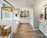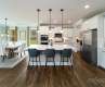 Hampshire plan offers formal dining room open to the butler's pantry and large walk-in pantry closet. The kitchen has an island that has pendant lights with Quartz countertop with subway backsplash. Chef's Kitchen includes gas whirlpool appliance package Stainless includes gas cook top, built in dishwasher, microwave and double wall ovens electric. Living room has a gas fireplace. Main flooring areas has extended Revwood flooring in main areas. First floor ceiling height 9ft with decorative molding two piece crown throughout first floor living area. Breakfast area looks out to the patio through the glass sliding doors. This home has a bedroom on the main level off the living room and steps away from the full bath down from the entry to the garage. The stairs are off the kitchen with open rails . Upstairs offers an open loft area off the primary suite with tray ceiling and sitting room with a spacious walk in closet.