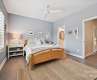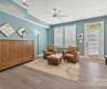 Modern 4-story townhouse offering space, style, and flexibility. The entry level features a 1-car garage, half bath, and a bonus room—ideal for an office, gym, or guest space. The main level boasts an open layout with a spacious living room, dining area, and a large kitchen with center island, plus access to a private balcony. Upstairs, the primary suite includes a full bath, while the second bedroom has its own ensuite and is conveniently located near the laundry closet. The top floor offers a bright open bedroom with a full bath and access to a private terrace—perfect for an independent teen, young adult, or long-term guest. With multiple en-suite bedrooms, two outdoor spaces, and a layout made for modern living, this home checks all the boxes.
