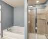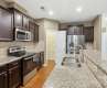 Charming 2-story townhouse showcasing an inviting open floor plan with a stylish kitchen featuring stainless steel appliances, decorative backsplash, pantry, and island bar overlooking the living room with a cozy fireplace. The primary suite offers a double vanity, separate tub, and shower. Enjoy a private fenced backyard, perfect for relaxing or entertaining.