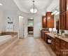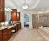 Behind the Gates: Prepare to be impressed! Situated on a corner, cul-de-sac, over-half-acre lot with POOL, this elegant estate offers an exquisite blend of luxury and comfort. Whether entertaining in the main level Formal Living, Dining and Great Rooms, upstairs in the spacious Recreation Room with wetbar, in the Exercise Room or outside at the pool, this home delivers resort-like living every single day. Primary bedroom suite on main boasts a large closet and spa-like bathroom. Hardwood floors on main, new carpet, fresh paint. Culinary enthusiasts will appreciate the granite kitchen counters, double oven, and stainless appliances. Your guests have lots of options and need not share: ALL secondary upstairs bedrooms are ensuite. Cozy evenings by the fireplace inside near the grand foyer or outside at the well-appointed veranda will be treasured. This home is a haven, a special space that you nor your guests will want to leave. Newer Roof and Furnace. Air Purifier system.