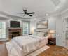Beautifully maintained home in the highly sought-after gated community of Providence Downs. Nestled at the end of a quiet cul-de-sac, this home offers privacy and a fenced, level backyard—perfect for outdoor entertaining. The main level showcases a spacious open floor plan with a seamless flow between kitchen and living areas, a butler’s pantry, and a versatile den/office. The first (of two) generously sized primary suite is located on the main floor and has private access to the back deck. 2 beautiful stone fireplaces are included in the family room and downstairs primary suite. Upstairs, you'll find a second primary bedroom, a large bonus/recreation room, and a dedicated home theater room—ideal for movie nights. New roof, irrigation system (2023), two tankless water heaters (2022), new downstairs HVAC unit (2025). New hardwood floors on upper level. Neighborhood walking trails, pickleball/tennis courts, inground pool, clubhouse, fitness center, playground, and ponds. Marvin Schools.
