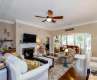 This charming home offers a spacious & versatile layout featuring a loft upstairs, complete w/ a full bath & bedroom—perfect for guests or a private retreat. The sunroom opens up to a patio w/ a pergola, ideal for relaxing or entertaining outdoors. Inside, the formal dining room boasts elegant coffered ceilings, adding a touch of sophistication to your gatherings. The open floor plan seamlessly connects living spaces, creating a warm and inviting atmosphere throughout. Suite has trey ceiling w/ an en-suite bathroom featuring a tile shower/soaking tub, dual vanity & spacious WIC. This residence offers a walk-in attic, generous storage throughout, & a dedicated home office. Amazing neighborhood amenities: Spectrum cable/internet, lake access, boat ramp, clubhouse, fitness center, playground, 2 pools, lawn maintenance, trash/recycling, recreation area, lakeside picnic area, tennis/pickle ball courts, walking trails & dog park! Don't miss the opportunity to make this stunning home yours!
